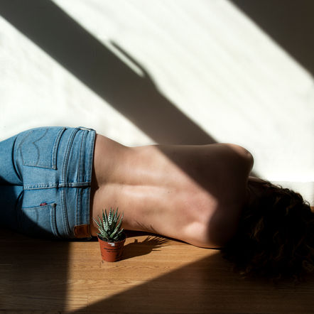 Untried Realities is about a personal experience of social separation during Covid in East London. Through self-portraiture, I bear the feelings of isolation, craving for human contact, and need for nature. The images were made in my flat in Whitechapel, an urban and concrete part of London. Where I live I do not have access to outdoor space and I started this series on the day of Boris Johnson’s self-isolation announcement in response to the situation. I use mundane household scenes to create a new “reality,” one which is physically in my flat, but one which hopefully visually transports the viewer into a parallel world. I make use of shadows and light to create humorous moments and temporary escapism from my current situation and to facilitate a sense of detachment.